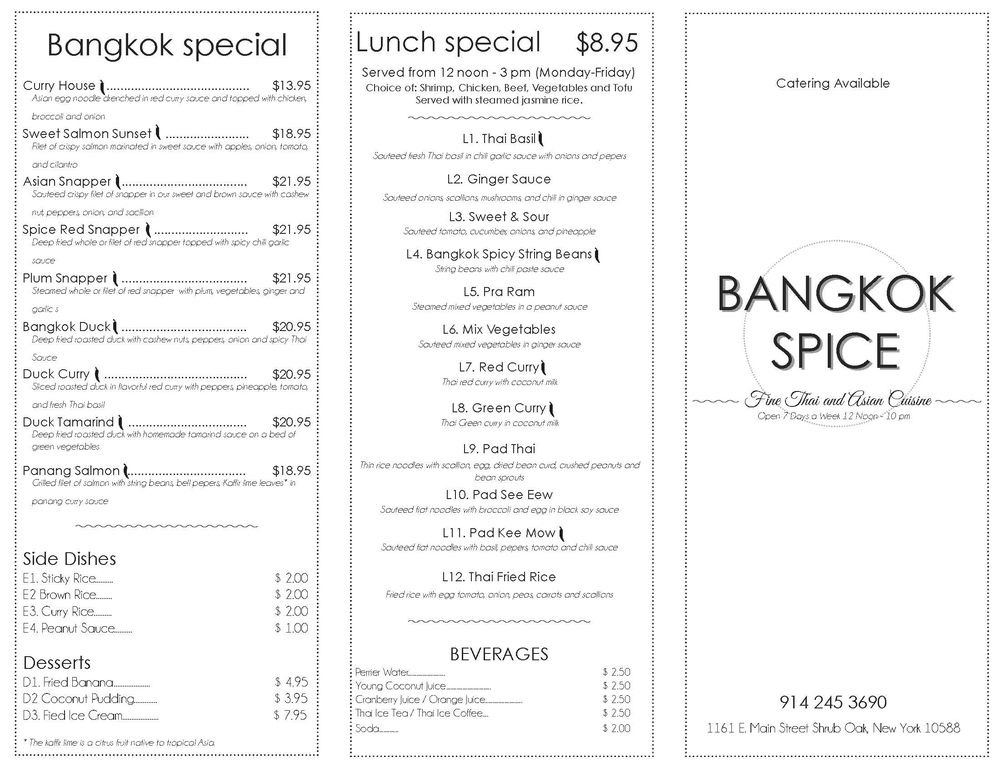 Bangkok Spice Menu